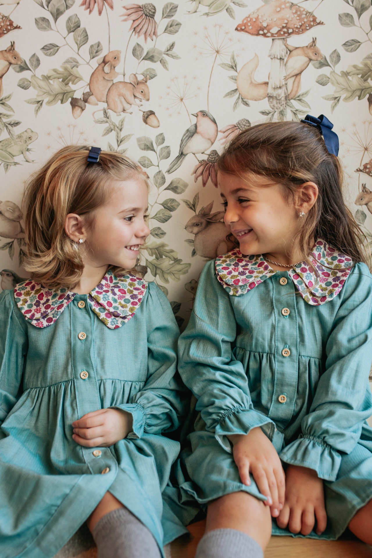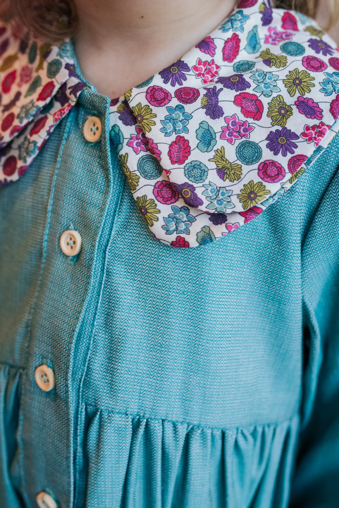 Vestido em tecido 100% algodão. Botões de madeira.